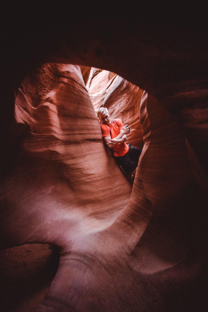 Upea kanjoni oli myös Coyote Gulch. Kanjonin pohjaa saattoi patikoida kaksi päivää korkeiden punakivisten seinien ympäröimänä. Matkalle mahtuu vesiputouksia ja upeita kivimuodostelmia, erityisesti kaikenkokoisia kaaria. Päästäkseen alas kanjoniin oli taas ensin ahtauduttava kapean halkeaman läpi, minkä vuoksi ihmiset tuovat köyttä mukanaan laskeakseen rinkat edeltä kanjonin reunalta alas. Köyttä tarvittiin myös ylös kanjonista kiipeämiseen, vaikka Markuksen mielestä tuosta 45 asteinen 100 metriä korkeasta seinämästä oli ihan turhaan peloteltu.