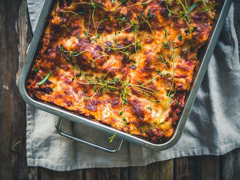 Vinkki: Lasagneen saat helposti upotettua jääkaapista myös ylimääräiset vihannekset, kun pilkot ne tomaattikastikkeen joukkoon. Munakoison, sellerin, kesäkurpitsan tai porkkanan jämät vaan sekaan.