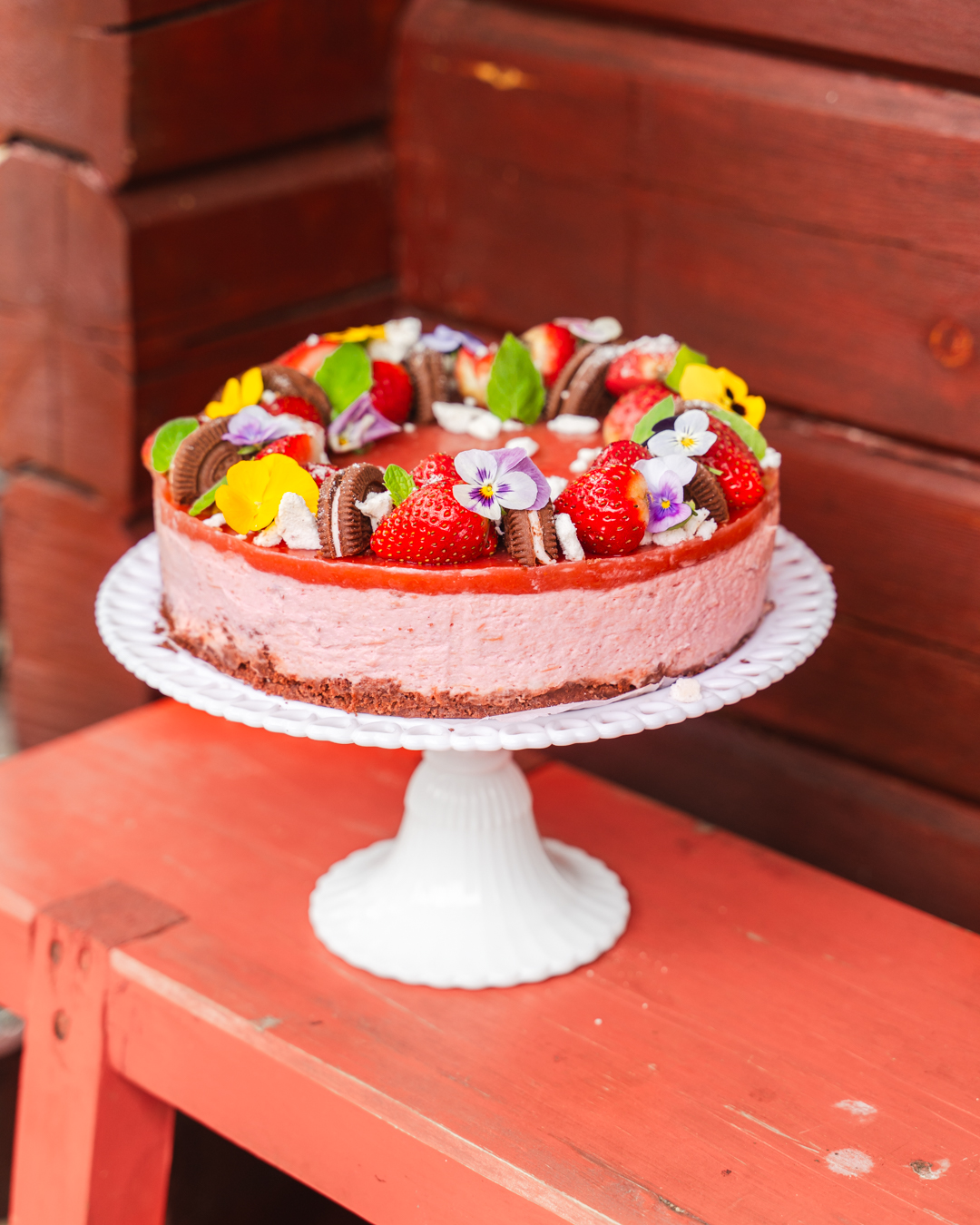 Mansikka-raparperijuustokakku – resepti