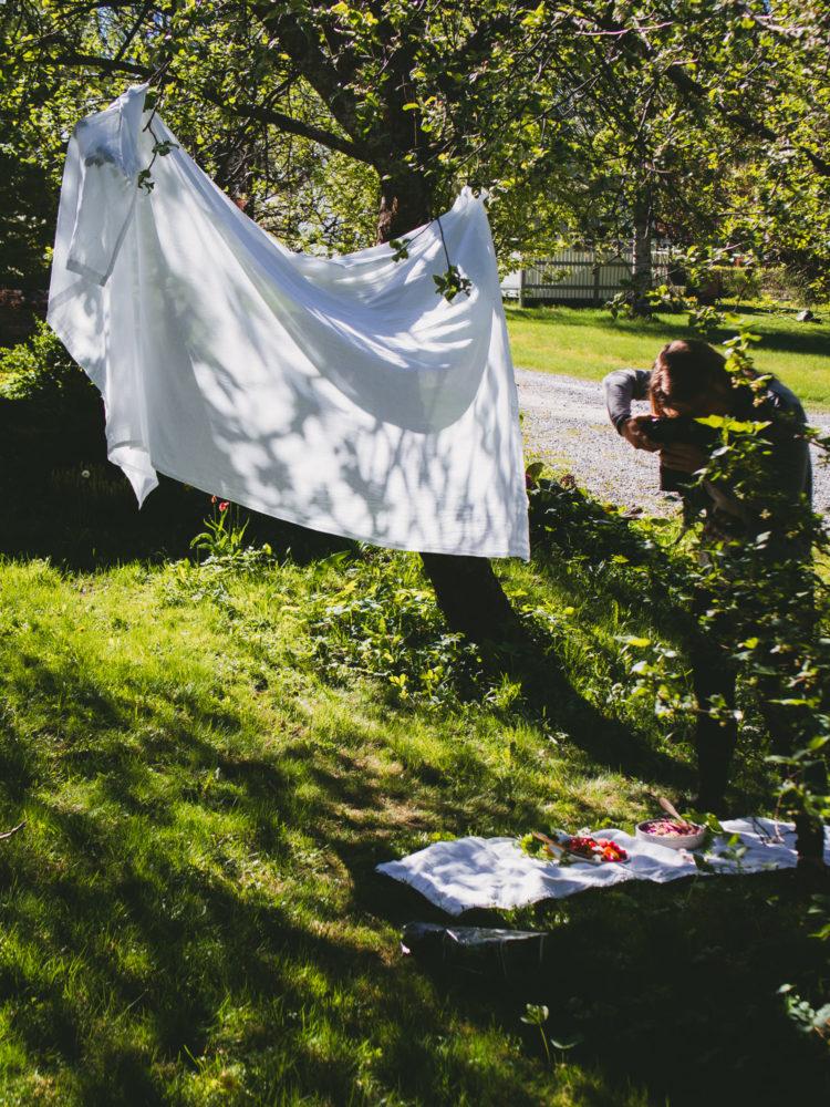 Pyrimme järjestämään mahdollisimman monta kuvauspäivää ulkona, johon kutsuimme myös bloggaajaystäviämme perheineen. Eiköhän kakkubrunssilla Rodopuistossa taas kilpailtu sekä sateen että romahtavan ja valuvan täytekakun kanssa, ja Annen kanssa saimme jälleen pidellä pressua brunssikattauksen yllä sadekuuron yllättäessä. Voi tätä Suomen suvea! Hannan kanssa perheineen sattui ihana, vain hieman vähemmän kolea kesäsää ja Minnan kanssa taas olimme jo oppineet jotain ja pidimme kuvaukset turvallisesti kasvihuoneessa.