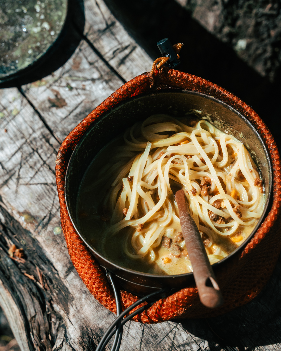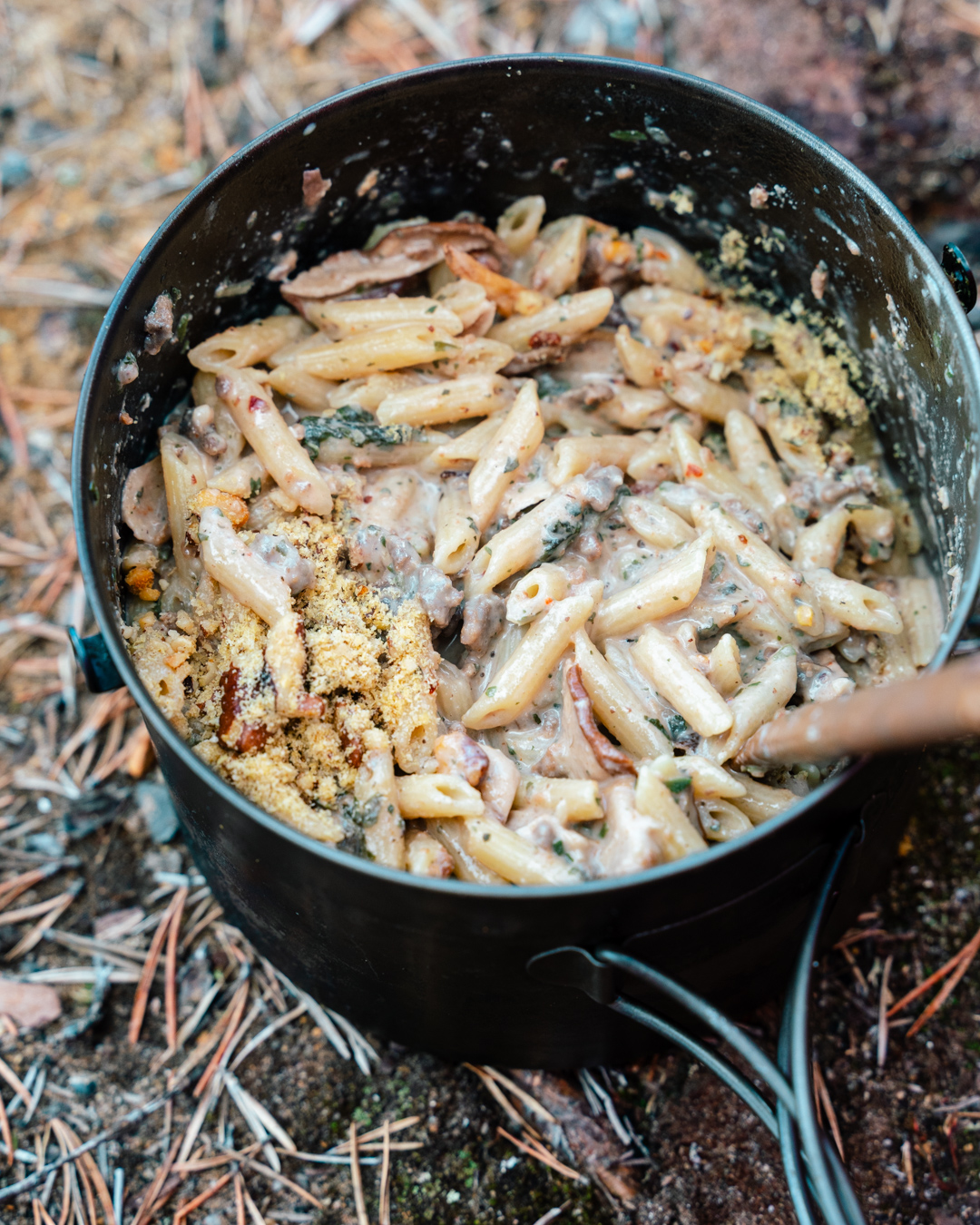 Tässä on lisäksi kermaa. Lyhyemmille vaelluksille viileällä säällä voit ottaa mukaan 2 dl kermapurkin ja kaataa sen (sieni)pastan joukkoon.