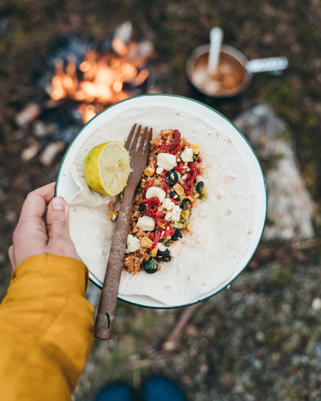 Päätyivät tortillan väliin. Mukana tortillan välissä kuivattu salsa, joka ennastettu kylmässä vedessä salsaksi. Salsassa on kuivattua fetaa, maissia, oliivia, tomaattia ja paprikaa sekä punasipulia.