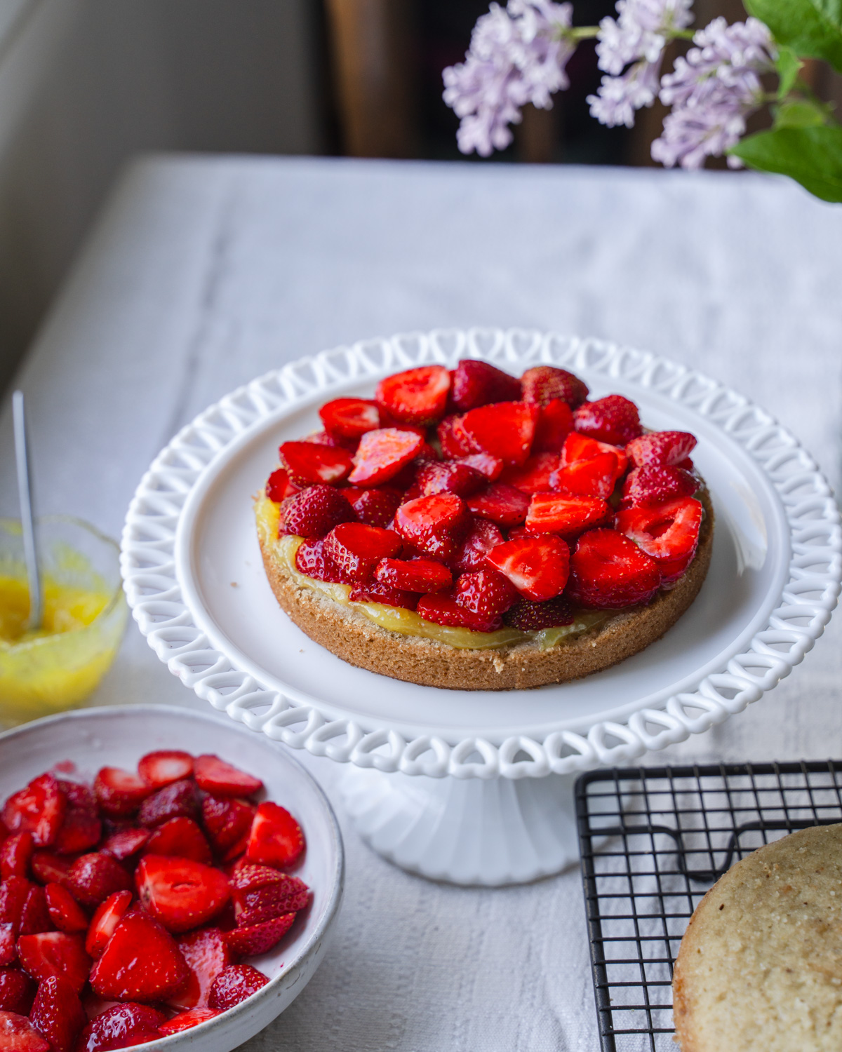 Koti gluteeniton ja vegaaninen mansikkakakku